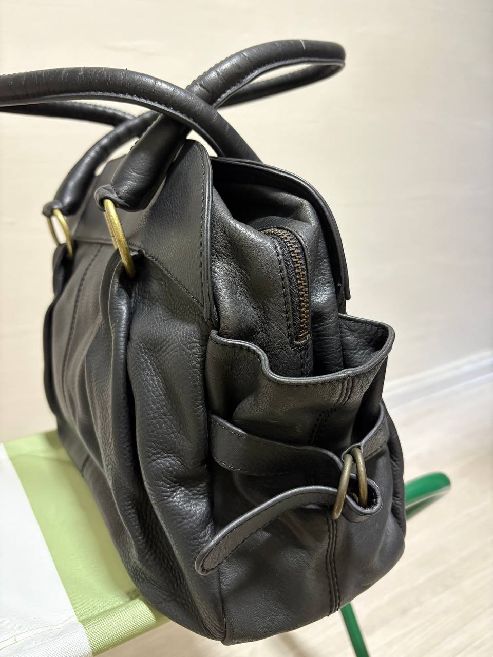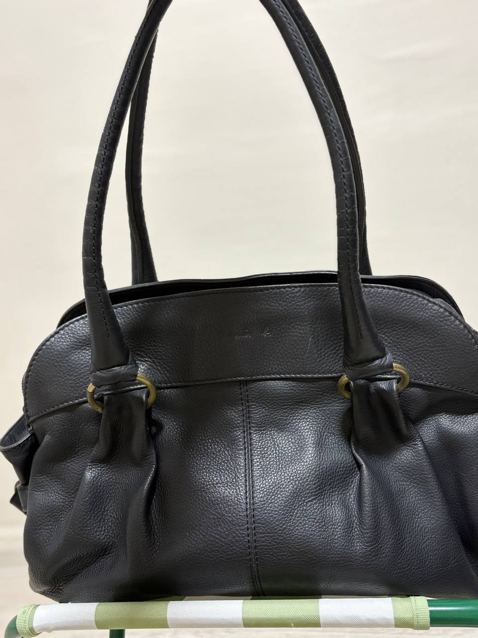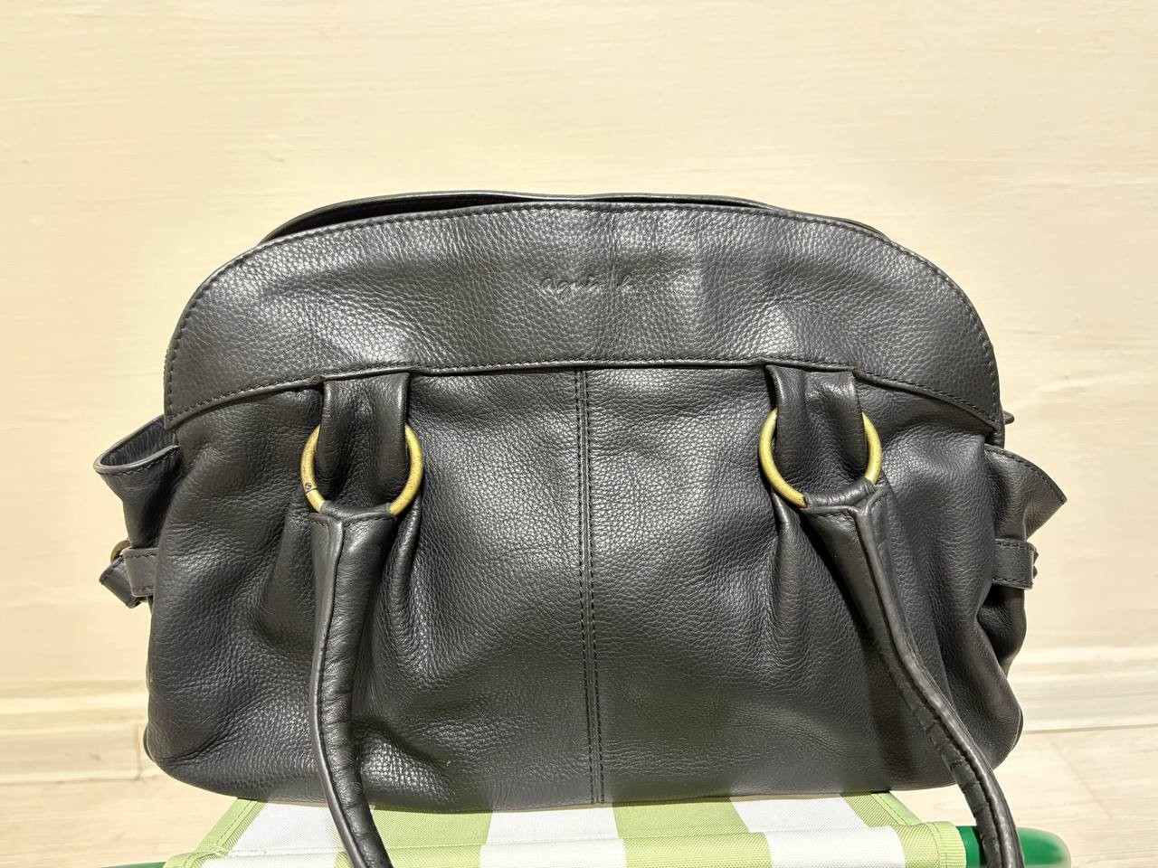 | Description | Preloved agnès b. black leather shoulder bag—timeless, spacious, and in very good condition with minimal signs of use. |